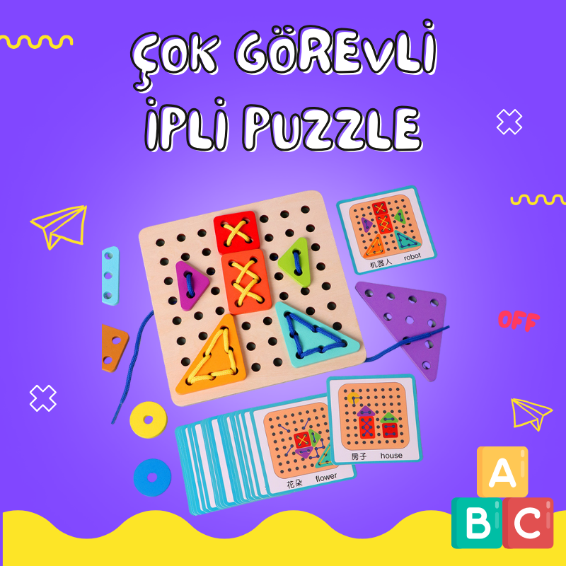 Çoklu Görevli İpli Montajlı Eğitici Puzzle Oyuncak